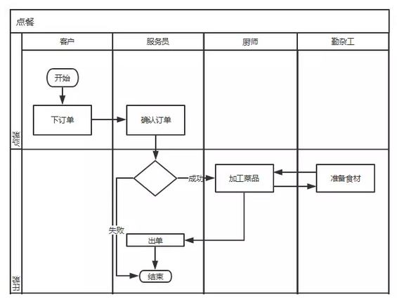 这段时间,让我对后台产品有了初步的了解。所以想尝试自己总结一下对后台产品设计和开发的一些知识。后台产品也有不同的分类,我要介绍的是工作流方面的产品。 以下的内容,有很多都参考了前辈的意见。有不对的地方也希望大家多多指点。 首先要清楚的是,后台产品和前端产品存在很大的差异性。后台产品更加注重的是业务逻辑的清晰和功能的实现,而前端产品对视觉设计和交互设计有更高的要求。 下面开始,介绍自己总结的后台产品的设计方法与思路(就像前面所言,更多还有其他前辈的知识,先在此道谢)。 业务逻辑梳理 需求调研与分析完成后,就是自己对内容的消化和吸收。首先要做的事情是自己先清晰地理解一个产品。只有自己理解了,才能更好地推进产品进行开发。 先梳理清楚线下的业务流程。将线下的业务流程梳理清楚以后,然后才是对产品的思考。这里要介绍几种帮助自己更好地梳理业务流程的工具。 状态图,流程图,泳道图。三种图,所起到的作用是不一样的。下面我详细说明。 a.状态图 状态图的作用是让人清楚业务的实现需要经历的状态序列,以及引起状态转移的事件,和因状态转移而伴随的动作。状态图的驱动是基于状态的转换。下面我以点餐为例子。 业务的开始和结束用圆角矩形表示。业务的状态以矩形表示。每一个矩形都表示一个状态。菱形表示业务分支。每一个矩形之间都伴随着一个动作。 状态图能清楚地让我们看到完成的点餐流程中,会在哪些地方进行停留,并知道转向下一个状态时会伴随着怎样的动作。另外,在 “菜品加工中” 下方特意设立了一个 “食材准备中” 作为子状态,因为业务流程中可能会出现某些特殊的情况(如某些菜品需要准备食材)而停留在某个状态,这时需要先去完成其它操作(准备食材) 后再回到该状态(菜品加工中)继续之后的业务流程。 也许会有人觉得,这样做将简单的事情复杂化了。如果对于简单的业务逻辑,确实有点多此一举,但如果一个业务流程中存在很多个(7 个 +?)状态的时候,我相信状态图能让你在进行业务梳理时保持比较清醒的头脑。 b.流程图 流程图,相信大多数人对此并不陌生。但是,我看见很多人绘制的流程图并不是十分规范。不规范的流程图,自己理解起来可能没有什么问题,但是别人可能就会产生误解。 流程图,我将它分为分为三步走。1.流程图。2.泳道图。3.分阶段的泳道图。下面一个一个介绍。 业务流程图描述的是完整的业务流程,以业务处理过程为中心,一般没有数据的概念。流程图以动作来推动业务前进。下面还是以点餐作为例子。 同样业务的开始和结束用圆角矩形表示,而每一个动作则以矩形表示,菱形表示可能会出现的分支。可以清晰的看到流程图没有任何状态标识。状态图与流程图表达的不同效果一眼便知。 流程图更加关注的是业务实现具体需要进行哪些操作。每一个动作的构成形式基本都是 “动词 + 名词” 或者 “动词” 的形,这样才能更加明晰以动作为驱动的流程图。 c.泳道图 泳道图,又称为跨职能流程图。也是我所说的流程图的第二步。作为流程图的进阶,泳道图加入了泳道表示不同角色(或岗位、部门等)。让人在了解业务流程时,也清楚由谁执行该动作。同样以点餐为例子。 可以看到,每一个动作都放在相应的泳道下,对应了执行此动作的人。这样对于业务流程中不同角色的职责也会更为明确的认识。 d.流程图终极版 可以看到,在最左边加了一个侧栏,将不同的动作划分进了不同的阶段。个人觉得这是弥补了之前没有状态说明的不足。让人在了解详细业务流程的同时,也对状态有了大概的认识。 也许很多人,觉得花这么多时间画图会浪费很多时间。我觉得仁者见仁智者见智了。对于我个人而言,每天捣弄这些图,会很快加深我对产品的理解。特别是在业务比 较复杂,而且之前有完全没有接触过相关方面知识的时候,仅靠大脑很难有清楚的思维,但是图形化后却能很好地理解。在业务整理上多花点时间整理,我觉得是很有必要的。 产品梳理 a.梳理好线下的业务逻辑以后,要将它抽离搬到线上。这个过程,可能会删除掉某些线下的环节。 同样以点餐为例。 可以看到,这个过程当中,厨师和勤杂工在线上不需要有操作。所以状态图和流程图看起来简洁了很多。 b.产品功能点。 依据产出的流程图,基本上可以大致确定产品的功能点。 先理出单独的功能(功能) 然后加入角色(功能 + 角色) 准备工作做好以后,可以开始搭建产品的架构图了。 页面关系 页面 + 功能 页面内架构 后面的架构就不写了。 先搭页面,再确定页面内的功能,最后细化页面内的信息。在原型出来以前,可以拿产品架构图先和别人进行一下交流。产品架构图相较于原型图,与数据库的设计思想比较一致。而原型视图化后,对于数据库设计却反而变得抽象了。另外,产品架构图修改较快捷,返工成本相对较小。 需要说明的是,产品架构图更多是需要个人的整理。 原型设计 产品梳理好以后,就要开始搭建原型了。 a.先确定通用模块:页头、页尾、一级导航、二级导航 根据产品的不同,选择合适的布局。 b.将产品架构图的内容填充到页面内,并加入文字说明操作