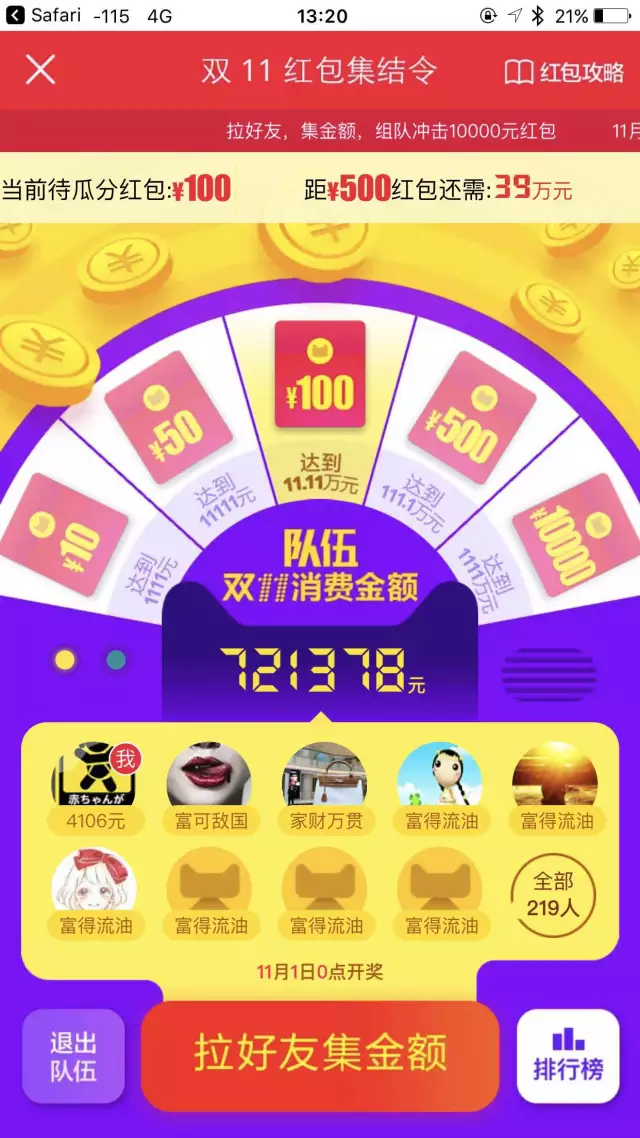 红包现金的分发,拉进的人越多,所分享的红包金额就愈大。与之前常用的红包裂变的方案相反。具备典型的流量蓄水特点。效果如何?那就期待下双十一当天的销售额吧。