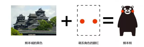 本县出身的作家小山薰堂和他的设计师好友水野学设计了如今知名的熊本熊「Kumamon」,熊本熊身体上使用熊本城的主色调黑色,并在两颊使用了萌系形象经常采用的腮红,而红色也蕴含了熊本县“火之国”的称号,它不仅代表了熊本县的火山地理,更代表了众多美味的红色食物。