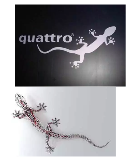 壁虎最厉害的是什么?抓地力!就算光滑如镜也能攀爬无阻。奥迪用壁虎作为quattro的标志,正是为了说明全时四驱的抓地力。