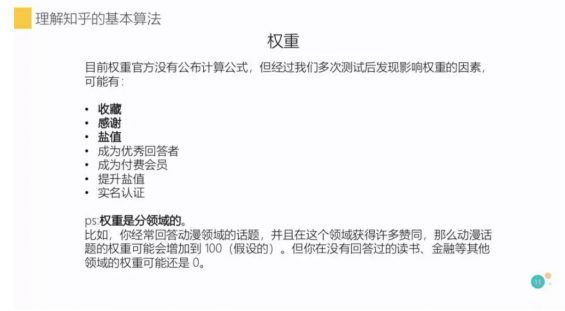 一、知乎定位 定位的出发点在于你的目的和你的资源。 我当时的目的单纯是为了引流,而资源基本只有我这一个人力。 资源决定了我很难自己去生产内容(当时主要是快速测试,几个方向在弄,很难专注去做内容,况且我也没这能力),所以我能做的事情只有搬运。 那要搬运什么? 再回到目的,引流目标群体,干货无疑是最好的选择(目前知乎引流也基本是干货引流),而且为了快速测试,你搬运的干货内容源必须足够庞大。 所以我最终选择k12学习资料切入,并且保持了每天一篇的更新频率。 二、运营策略 这里主要有三个策略,提升文章/回答的权重、铺关键词和找热点 2.1 提升文章/回答权重 知乎的推荐系统是根据权重来排的,权重越高,越能推荐给用户群体,并且用户主动搜索的时候,文章也能排的更前。 权重的计算公式如下: