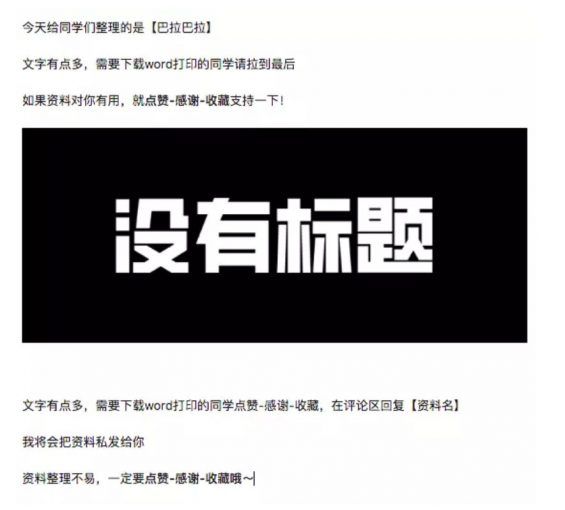 而提升权重我用的主要有以下几点: 2.1.1 优质内容 优质内容决定了你的文章权重高低,在冷启动(发文章的30分钟内容获得的互动和完读率决定了第一波的推荐量)和后续权重的提高都会有很大的裨益。 挖掘优质内容就得从内容源出发,这里不多赘述,直接说我自己的例子。 我的内容源主要来自qq群,百度文库和一些同行的推文,所以判断优质的方法就比较轻松了,qq群就是下载量,百度文库就是评分,推文基本就是阅读量。 2.1.2 养回答 养回答算是我自己研究出来的一个小套路。 主要分为三步:引导互动-沉淀权重-引流文案。 第一步:引导互动 开头:资料名称+资料下载方式在文末+引导三连+关注 中间:资料内容 结尾:资料名称+如需获取,请三连后在评论区回复资料名(这一步就是诱导互动了)