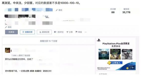 某个关键词的前三条都是我的 2.2.2 从核心关键词里找潜在爆款 一级关键词不可能不碰,因为流量很大,总有可以分的点。既然抢不了一级关键词的第一条,那就可以试试第二第三条。 所以核心关键词的第一条回答我基本不答,而是去找有可能爆发的回答,我总结了潜在爆款回答的3个特征。 高浏览,中关注,少回答。对应的数据差不多是10000-100-10。