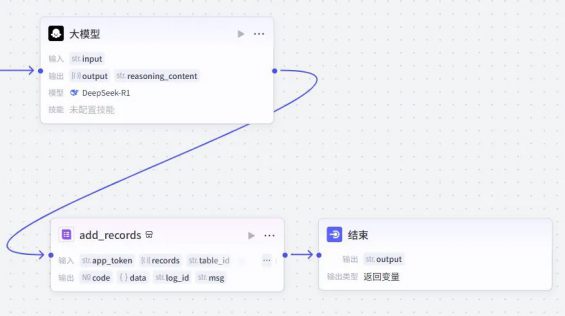 看到了吧,这次成功了,说明现在我们的输出结果,已经成功保存到我们的飞书多维表格里面了
