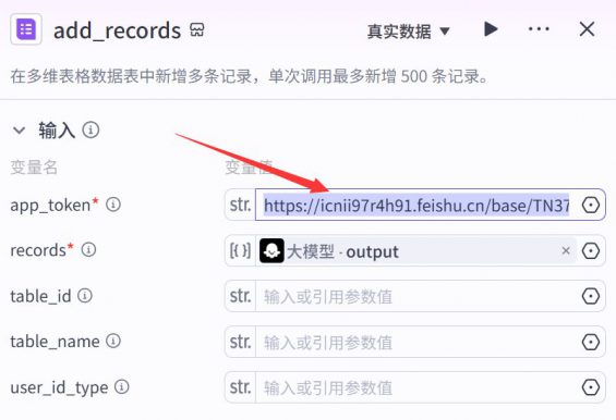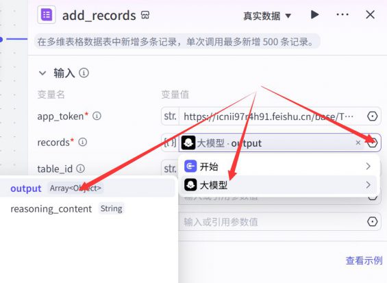 下面是records参数,这里直接选择大模型输出的结果即可。