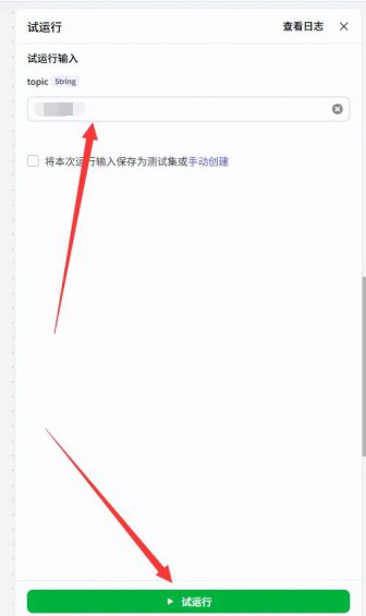 配置好了前面5步以后,你就可以测试流程是否能跑通了,比如这里我就拿我的爆文标题工作流来举例