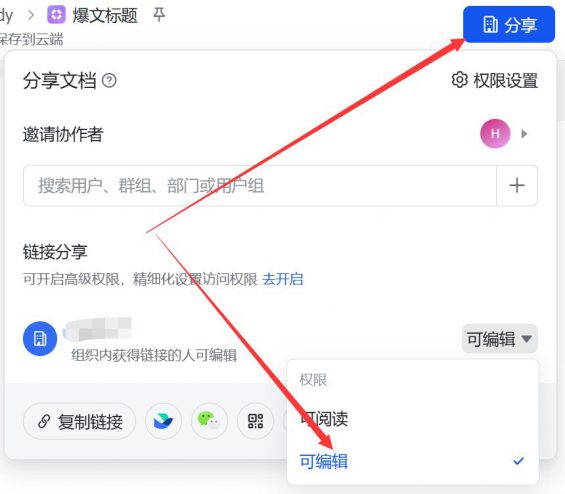 对了,如果你想要把生成的内容发给同事编辑,也超级简单,只要把这里的权限打开