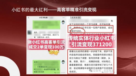 所以说,高客单的精准引流和变现,是目前小红书最大的红利。但我看到群里有同学问,是不是要先涨粉、先把IP声量做大,才能获客?其实,这个路径并不对。