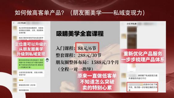 想想看,只教P图,收几百块很正常。但要是教提升私域变现能力呢?客单价是不是就能提高了?