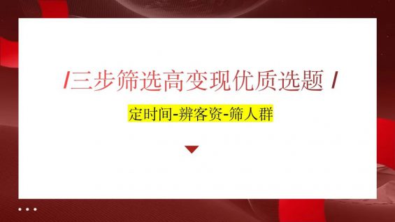 接下来,我将通过三步教大家筛选出高变现的优质选题,分别是定时间、辨客资和筛人群。