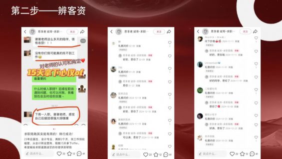 第二个是辨客资。大家会发现,很多评论其实是无效的。我们要判断笔记评论区是否有精准的客户资源。