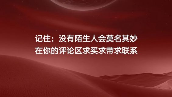 大家一定要记住,没人会平白无故在你的评论区求买、求带、求联系。