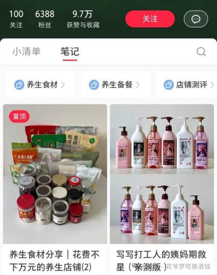 比如现在的人很关注脱发问题,她做了一个“100%纯自用丨一些吃的用的养发量的养生好物”。