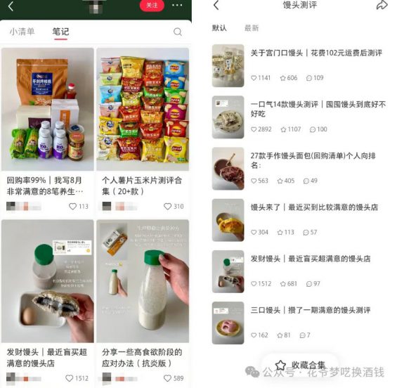 甚至我跟你讲个最离谱的,这个账号光是做馒头的健康测评,都出了好几篇千赞爆款。