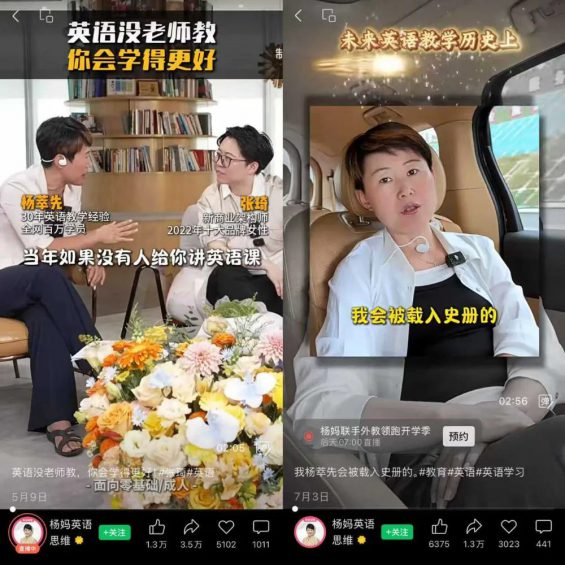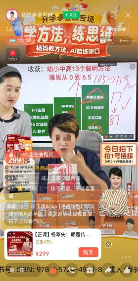 在刚刚结束的暑假,又有一批教育达人和教培商家赚翻了。 运营社注意到,教育博主 @杨妈英语思维 靠一门 299 元的英语直播课突出重围,一跃成为视频号英语教培赛道的一姐。 友望数据显示,最近 60 天(2025 年 6 月 30 日-2025 年 8 月 29 日), @杨妈英语思维 直播带货 27 场,不卖别的,只卖定价 299 元的《 杨萃先-颠覆传统英语学习法 直播课》,吸引了 5 万多人下单,销售额超过 1500 万元。 视频号直播卖课这么猛吗? @杨妈英语思维 是怎么做的?这当中藏着哪些卖课套路?今天我们就来聊聊这些。 01 你印象中的网红英语老师都是什么样? 是亲和力满分的美女帅哥,还是口音纯正的名校高材生,又或是幽默的段子手? 很多人可能都没想到,这个暑假,在视频号卖课最猛的英语老师居然是一位有些严厉的 70后 老师。 没有美颜,没有段子,甚至连英语口语也算不上发音标准,但就是这样,@杨妈英语思维 还是获得了众多粉丝的青睐。 2024 年 4 月,@杨妈英语思维 开始起号,在小红书和视频号发布了第一条短视频,抖音账号也是去年 8 月才开始同步更新。 截至目前,@杨妈英语思维 在抖音吸粉 155.5 万,在小红书也收获了 25.6 万关注。视频号不显示粉丝量,但 @杨妈英语思维 在视频号的带货数据惊人,商品橱窗销量达到 16 万件,有 15.3 万人跟买。 友望数据显示,今年 7 月,@杨妈英语思维 以 921 万+ 的预估销售额拿下带货主播教培分类榜 Top1,是视频号卖课销售额最高的达人。一位做视频号教育 IP 陪跑的资深操盘手告诉运营社:”杨妈的带货水平,已经是视频号英语赛道的第一了。“ 7 月视频号带货主播教培分类榜 图源友望数据 从起号到视频号英语赛道“一姐”,@杨妈英语思维 这一年多时间都干了啥? 一是勤快更新。从起号开始,@杨妈英语思维 就保持日更,每天发布 2 条短视频,基本上都使用杨妈的个人形象照为封面,从人生经历、英语学习和教育理念三个方面打造个人 IP 。 在视频中,杨妈自我介绍是农村出身的高考文科状元,是前新东方老师、长江商学院客座教授、畅销书作者,也是一位资深英语老师,主张不背单词、撕掉语法书,像学汉语一样学英语。 二是高频超长直播。@杨妈英语思维 在 2024 年 5 月 14 日开启首次直播,此后一直坚持多平台同步直播,平均每周直播 3-4 场,形成了早上 7 点开播的惯例,场均直播 10 个小时以上。 友望数据显示,最近 60 天,@杨妈英语思维 共直播 27 场,观看人数超过 276 万。直播间里,杨妈和小助理配合,一边结合学员案例讲英语学习方法,一边带货 299 元的英语直播课,吸引了 5 万多人下单,GMV 超 1500 万元。 最近 60 天@杨妈英语思维 视频号直播带货数据 图源友望数据 那么,是谁在买单 299 元的杨妈英语直播课?@杨妈英语思维 的粉丝又有哪些特别之处? 从蝉妈妈后台看,@杨妈英语思维 直播间有 77% 的观众是女性,31-40 岁的用户占比超过 68%,其中大部分用户在新一线和二、三、四线城市。 @杨妈英语思维 直播间观众画像 而 @杨妈英语思维 也经常在视频中分享一个理念:“最好的学语言的方式是妈妈亲自带,妈妈的舌头价值百万,妈会会一窝,我要带领 100 个中国妈妈成为自己孩子、孙子、外孙的英语老师。” 杨妈透露,从 2017 年推出杨妈英语学习法,有 100 多万学员跟着她学英语,其中每年有 1 万个宝妈跟着学习当老师,已经培养了 6 万个英语老师。 结合蝉妈妈的直播观众画像来看,@杨妈英语思维 的目标用户不是精英家庭,而是教育资源匮乏的二三四线城市的宝妈,希望能低成本提高孩子英语水平,也为自己寻求职业机会。 02 在这个暑期招生旺季,@杨妈英语思维 为什么能从众多教培直播间脱颖而出?她在视频号是怎么卖课的? 1)两招让内容“转”遍家长朋友圈 视频号生长在微信生态,内容可一键转发至朋友圈、群聊,易撬动粉丝社交网络实现破圈。@杨妈英语思维 虽少见 10 万 + 点赞爆款,但转发数据亮眼,且普遍高于点赞与 比心数。 整体来看,@杨妈英语思维 发布的内容主要有两类:一是日常情景实用英语口语(以常用词句为主),二是引发家长共鸣的教育理念与学习方法。 运营社梳理,近半年其有 27 条短视频转发超 2000,其中藏着两个细节巧思: ①互动情景讲干货,开场直戳需求 @杨妈英语思维 最近发布的转发量前三的短视频《每天 5 句起床口语》《记住这 18 个单词,寒假出国不会英语也不慌》《考考你一句英语》,虽然是常见主题,但胜在简单直接、互动性强。 如 8 月发布的《每天 5 句起床口语》2 秒点题 “每天起床跟孩子说 5 句英文,他的听力和语感不好都难”,安排助理跟读营造学习氛围,转发破 3.6 万;6 月的《考考你一句英语》把镜头对准 “电梯教学” 场景,一问一答 + 纠错跟读,2 分钟教 11 个短句,收获了 2.5 万转发。 @杨妈英语思维 的热门短视频《每天 5 句起床口语》和《考考你一句英语》 ②语出惊人,打破传统认知 除了英语干货外,一些语出惊人、打破常规的观点和内容也能吸引更多观众转发。 杨妈跟全网粉丝上亿的商业思维导师张琦对话,用一句“当年如果没有人给你讲英语课,你妥妥的现在英语贼好”,颠覆固有观念,吸引了 3.5 万人转发。 在另外一条转发 1.3 万的短视频中,杨妈更是直接用“我会被载入史册的”做开场白,阐述自己培养宝妈学英语的理念,让宝妈们既能带着自家孩子学英语,还能当老师、带学生。 @杨妈英语思维 的热门短视频 