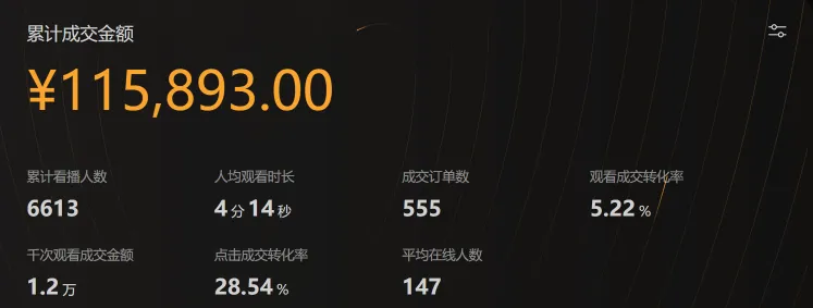 看播人数只有6000人,却卖了11万多;千次观看的GPM能到12000,观看成交率也很高,而且这11万里面,至少有2到3万的利润,退货率也相对低一些。
