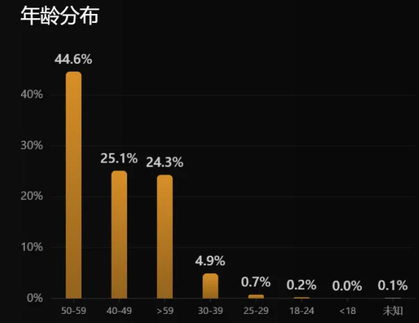 视频号50到59岁的用户占比44.6%,60岁以上的占24%,也就是说50岁以上的用户在我们这里接近70%。