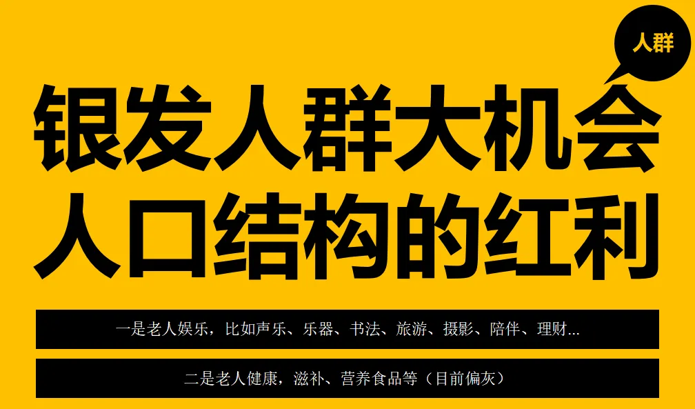 我自己下半年也打算做老年娱乐方向,因为老年人有两大优势:一是有时间,60岁以上退休人群看手机的时间长,时间充裕;二是需求多。