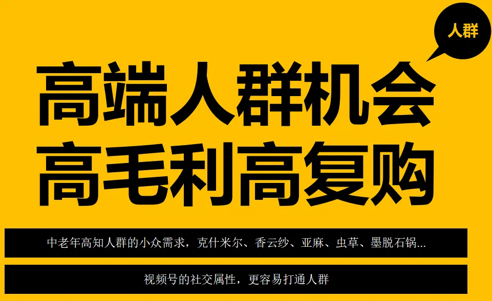 去年从抖音朋友那边拿到的数据显示,很多都市中产消费在下降,因为收入降了但开销没减,手上可支配资金少了;但老年人不一样,他们可支配的时间和钱都多,所以做高客单价行业,比如克什米尔围巾、墨脱石锅这类,在视频号会很合适。