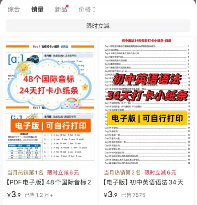看看发布的内容,把卖的资料打印出来,还各种模板,各种形式发布,发的时候都带上关键词,每个笔记下面都带产品,不看销量,看到这样的内容,你说赚啥钱呢,谁去买单。
