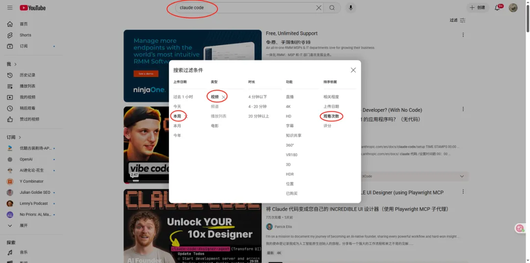 具体操作是:筛选“本周”或“本月”发布的视频,按“观看次数”从高到低排序。