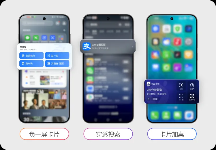 这样,用户不需要进入APP,就能在桌面、负一屏、全局搜索等系统级的场景,获取APP里的内容和服务。服务触达用户的展示机会大幅增加,链路缩短,转化效果也显著增强。