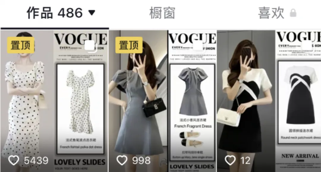 现在大多还是实拍 + 混剪,我做的时候只是把小红书上的穿搭图片搬运到抖音上发布,类似以下这种: