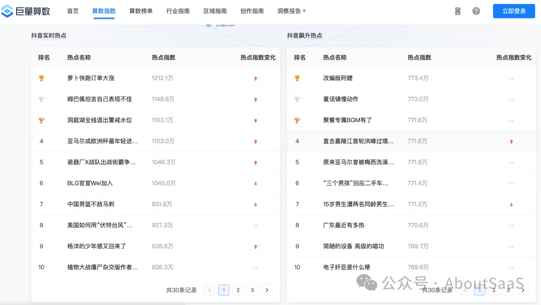 抖音实时热点、抖音飙升热点。