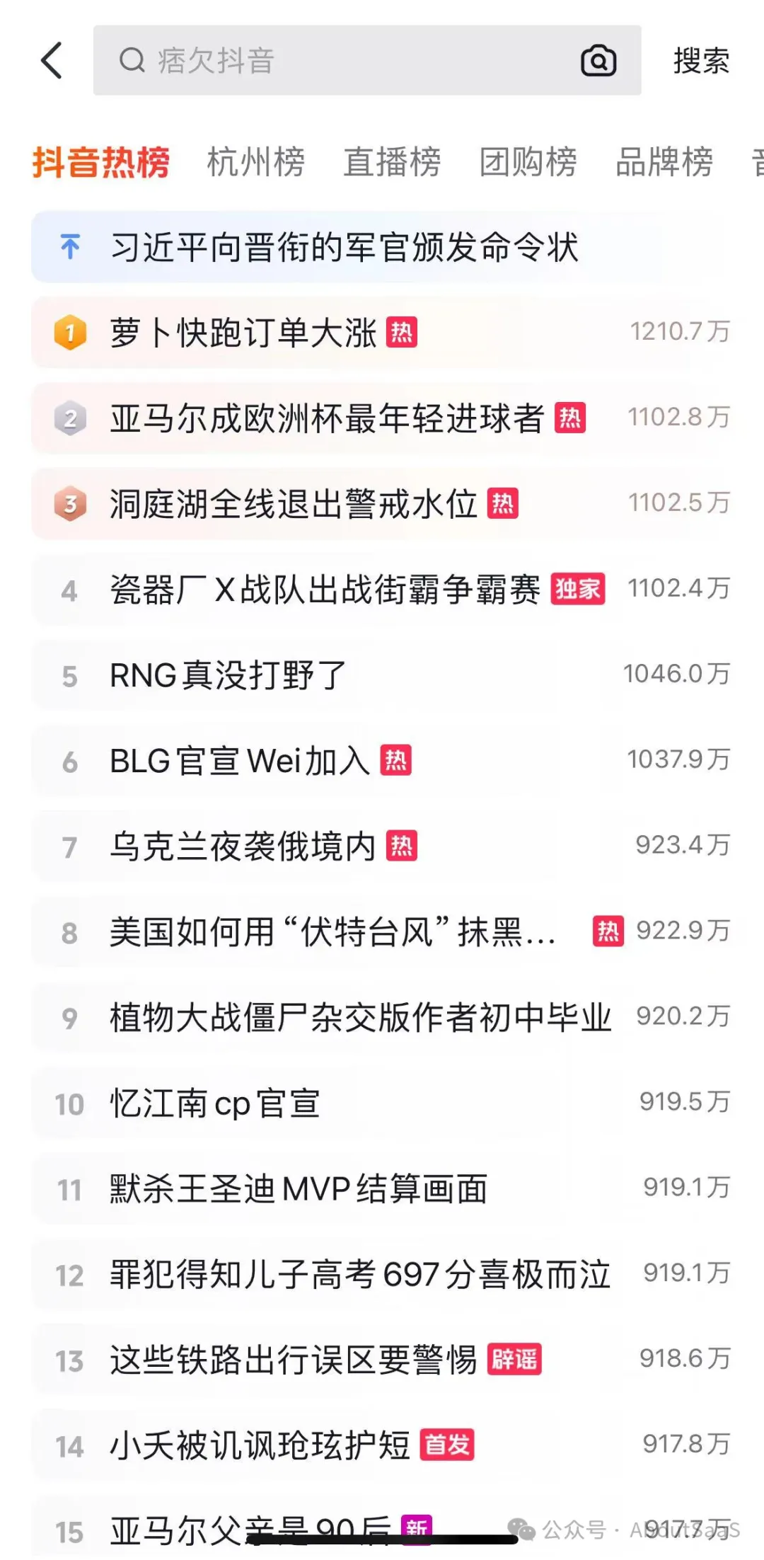 19、抖音搜索热榜