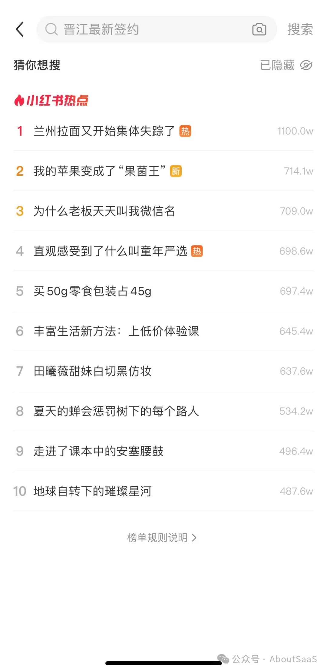 20、小红书搜索热榜