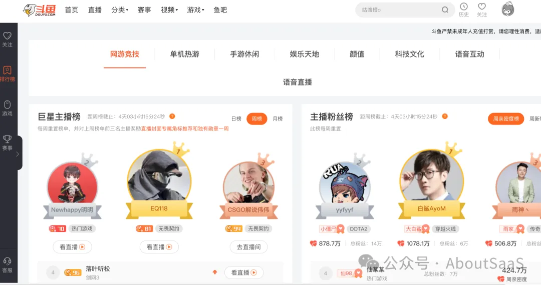 24、斗鱼排行榜
