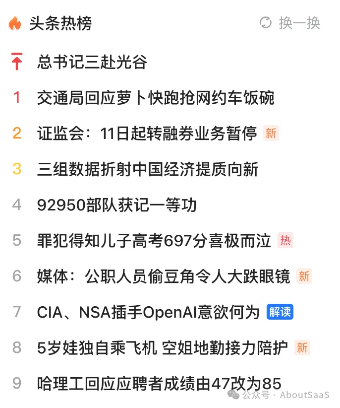 25、今日头条热榜