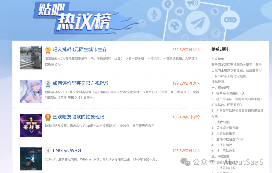 28、百度贴吧热议榜