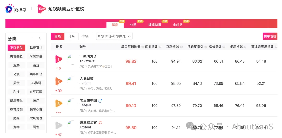 36、微播易短视频商业价值榜