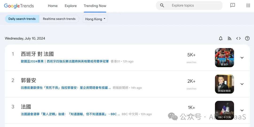全球各国家/地区热度 、实时搜索热榜。