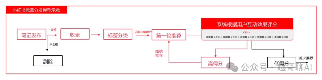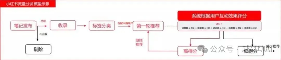 笔记发布后,小红书根据学习模型对笔记质量进行打分,根据分数决定笔记初始排名和是否继续给笔记推送流量。