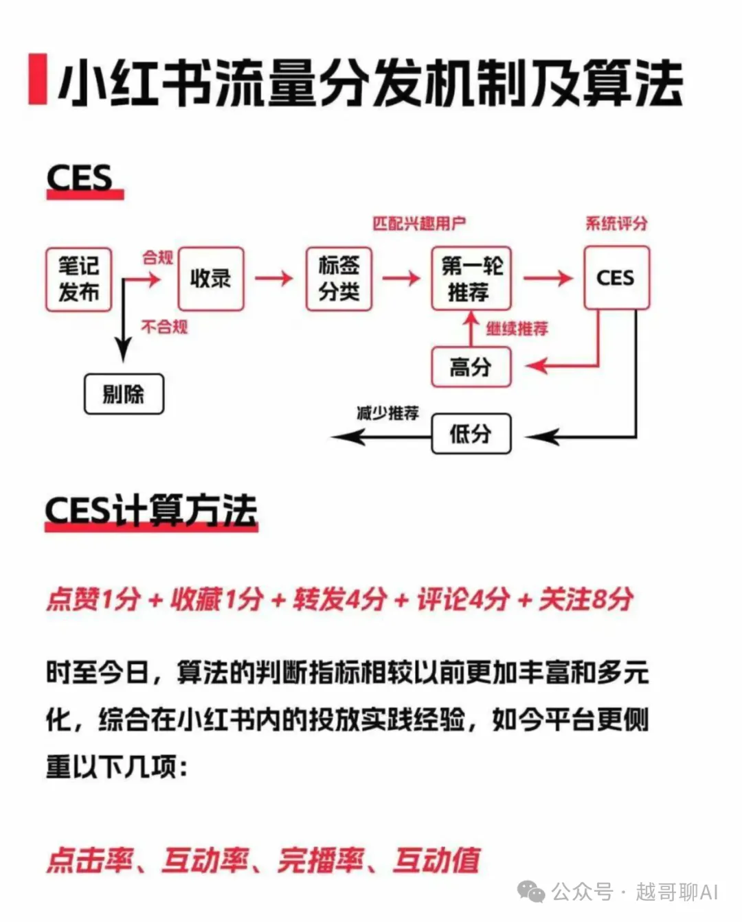 CES评分=点赞数×1分+收藏数×1分+评论数×4分+转发数×4分+关注数×8分