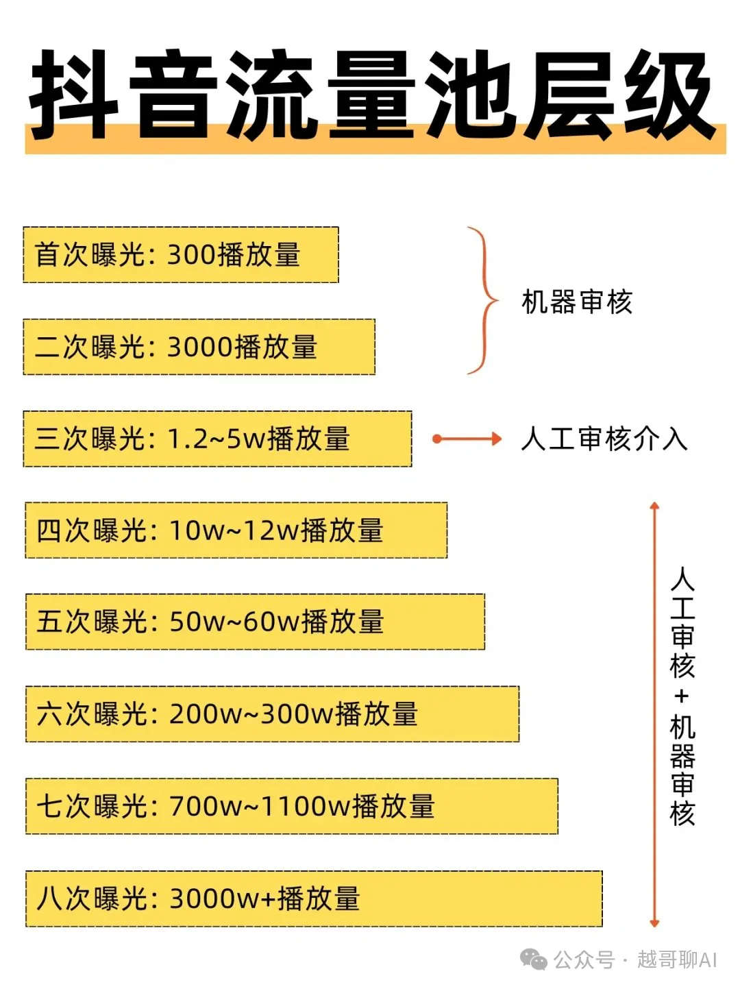- 冷启动池:300-500曝光(粉丝、朋友、少量匹配用户)。最难突破,因为数据来源复杂。