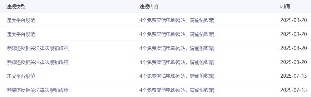 公众号千万不能发以下20种内容,轻则限流重则封号! 觉得有用的朋友可以转发、点赞、收藏学起来了! 1、电影网站 流量高、扩散传播快,但是有版权和违规违法链接风险,不要发 最近因为这些内容,平台反复警告提醒 晒收益、晒赚钱现在都属于违规限流范畴 3、违规涨粉引流不能发 平台和法规规定,不愿意虚假、工具、恶意涨粉 涨粉还是要靠优质内容才行,互粉、工具涨粉的朋友们快收手吧 4、工具资源类不能发 尤其是分享破解软件、免费资源的朋友们,限流封号哦 5、宣传AI工具快速赚钱的不能发 哪有那么容易,除了割韭菜全是割韭菜 6、免费素材网站不能发 小心侵权风险,只要需要vip的平台,都有版权保护 7、政策法规不能随意解读、误导公众 8、过渡营销不能发 很多人把别人的内容拼凑修改下发布,都属于违规 而且你分享的内容操作步骤,如果被人举报相同和类似,大概率也会受到处罚 之前师兄分享的微信聊天记录找回方法,因为步骤和别人的类似,被举报了。然后平台判定我抄袭和滥用原创???!!! 事实上操作类的方法很多都差不多,各位注意选题 10、低俗色情不能发 11、推荐股票、基金、彩票类的千万不能发 12、黑五类不能发 黑五类产品:减肥药、增高产品、性保健品等夸大功效的宣传 金融诈骗:无资质推荐股票、虚拟货币投资、高收益理财课程 13、标题党不能发 纯标题党,内容毫无实质信息 14、诱导用户添加微信、获取联系方式、跳转外部链接等 比如:关注公众号回复关键词领取资料、加好友领取资料等 15、违反广告法的绝对性词语 100%、最佳、最强、祖传、宇宙级等; 内容发布前建议用下方工具检测,避免违规 3个免费违禁词检测工具,视频号、抖音、小红书都能用! 16、侮辱诽谤他人 17、军事类非客观观点 18、灵异迷信类 19、玄学鬼怪类 20、恶意摆拍、事件营销、虚假演绎等; 做自媒体一定要遵守平台规则和法律法规,一旦违规账号就废了。尤其是那些指望平台推荐流量的小伙伴们,慎重! |