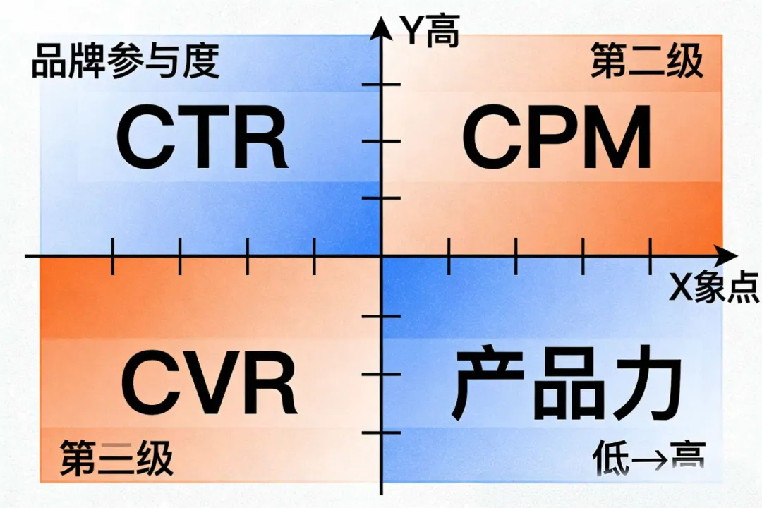 2025 年双 11 大战刚过,某新锐品牌投手小李却愁眉不展:同样的预算,为什么竞品的广告能跑量 300 万,自己的账户却连 50 万都烧不出去? 后台数据显示 CTR 高达 8%,CVR 却不足 1%,CPM 更是比行业均值高出 50%。这种“数据打架”的情况,其实暴露了广告投放最核心的矛盾——品牌视角与平台规则的认知差。 本文用一个“投放四象限模型”,从 X 轴(品牌参与度)和 Y 轴(平台参与度)的交叉视角,拆解 CTR、CPM、CVR、产品力这四大核心指标的底层逻辑。看懂这篇,你就能明白为什么有些广告“看起来很美”却不转化,为什么高 CPM 反而可能是好事。 第一象限:CTR 为什么是品牌和平台的必争之地 当品牌参与度和平台参与度都拉满时,CTR(点击率) 就成了双方的共同 KPI。对品牌来说,CTR 是素材质量的“体温计”;对平台来说,CTR 是流量效率的“度量衡”。但这里藏着一个新手最容易踩的坑:跨平台对比 CTR 就是在耍流氓。 以小红书为例,双列信息流的 CTR 正常值在 3% – 6%,而抖音的单列上下滑场景能轻松跑到 8% – 15%。更极端的是搜索广告,品牌词 CTR 可能高达 30%,泛兴趣词却可能低于 1%。正确的做法是:按平台、按素材类型、按流量点位拆分对比。比如把抖音的“开屏广告”和“信息流广告”分开看,把小红书的“笔记广告”和“搜索广告”单独分析。 平台为什么如此看重 CTR?某字节跳动广告产品经理透露:“双列场景下,CTR 权重是单列的 3 倍。因为用户每一次滑动都是主动选择,低 CTR 素材本质是在浪费用户时间。”这就是为什么当你的素材 CTR 低于大盘均值 50% 时,系统会直接限制流量——平台宁愿空出广告位,也不愿展示用户不感兴趣的内容。 品牌该如何优化 CTR?除了常规的标题党、高颜值图片,更关键的是“平台语言翻译”。小红书要用“干货感”封面,比如“3 步搞定伪素颜”;抖音要做“前 3 秒钩子”,比如“最后一步我惊呆了”。记住,CTR 的本质是“预期管理”,让用户点击的不是图片,而是对内容的期待。 当平台参与度高而品牌干预度低时,CPM(千次曝光成本) 就成了最具争议的指标。某快消品牌市场总监曾怒斥投放团队:“CPM 比上个月涨了 20%,你们是不是把钱都浪费了?”但他不知道的是,同期的转化率提升了 50%,最终 ROI 反而变高了。 这里要纠正一个致命错误:CPM 不是越低越好。在竞价广告体系里,CPM 本质是 ECPM(预估千次曝光价值)的结果,而 ECPM = 出价 × CTR × CVR。当你的素材和转化能力足够强时,即使出价降低,ECPM 仍可能上升,最终的实际 CPM 也会提高——这恰恰说明你的广告在平台算法中更有竞争力。 平台和品牌看到的 CPM 根本不是一回事。平台看的是“先验 CPM”(预估能带来的收益),用于决定是否把流量分配给你;品牌看到的是“后验 CPM”(实际花费),是竞价后的结果。某阿里妈妈优化师解释:“当系统发现你的广告 CTR 和 CVR 特别高,会主动提高你的 ECPM 排名,让你以更低的出价拿到更多曝光,这时后验 CPM 反而会下降。” 那品牌该如何正确看待 CPM?记住三句话:在品牌广告中,CPM 越低越好;在竞价广告中,CPM 高不一定是坏事;脱离 ECPM 公式谈 CPM 就是耍流氓。如果你的 CPM 上升伴随着点击率和转化率的提高,恭喜你,这说明你的广告正在进入“正向循环”。 第三象限:CVR 转化率到底由谁决定 当品牌和平台参与度都较低时,CVR(转化率) 就成了那个“不受控”的变量。很多投手会发现:明明 CTR 达标了,出价也给够了,可用户就是不转化。这时候问题可能不在投放端,而在用户决策链的最后一环。 CVR 本质是“用户需求匹配度”的函数。平台能帮你找到“可能感兴趣”的人,但最终是否转化取决于:你的产品是不是用户想要的?价格有没有吸引力?落地页有没有打消顾虑?某电商品牌运营总监分享过一个案例:他们把产品详情页的“7 天无理由退货”改成“拆封也能退”,CVR 直接提升了 30%——这就是典型的品牌可控因素。 平台对 CVR 的影响则体现在“流量精准度”。当你开启“深度转化目标”(如成交)时,系统会自动过滤掉那些“只点击不购买”的人群。但这需要足够的数据积累,某拼多多商家透露:“新账户前两周 CVR 可能只有 0.5%,但跑满 100 单后,系统就能精准找到高转化人群,CVR 能冲到 3% 以上。” 优化 CVR 的核心是“节点拆解”。把从点击到成交的路径拆成:落地页打开率 → 加购率 → 下单率 → 支付率,每个节点都可能存在优化空间。比如发现很多用户加购后放弃支付,可能是因为支付流程太复杂;如果落地页打开率低,可能是网页加载速度太慢。CVR 就像多米诺骨牌,任何一个环节掉链子都会影响最终结果。 第四象限:产品力和出价 品牌最后的护城河 当品牌参与度高而平台参与度低时,产品力、后链路数据、出价策略就成了品牌的“自留地”。这些因素平台无法直接干预,却直接决定了投放的天花板。 先说产品力。2024 年某美妆品牌通过“DPA 动态商品广告”,把产品库从 100 个 SKU 细化到 500 个,ROI 直接提升了 80%。原因很简单:不同肤质、不同年龄段的用户需要看到不同的产品。比如给油皮推“控油粉底液”,给干皮推“保湿粉底液”。平台能帮你找到油皮用户,但如果你的产品库没有对应的 SKU,转化自然无从谈起。 后链路数据的重要性被严重低估了。某腾讯广告优化师透露:“接入一方数据的广告账户,模型准确率比纯平台数据高 40%。”因为平台只能看到“