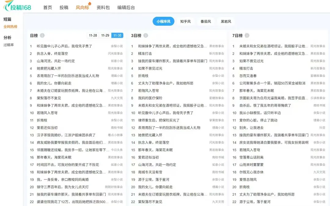 方向确定之后,我会去找三到五篇同类型的爆款短篇,把它们当成可参考的成功样本,重点观察它们是如何讲故事的。
