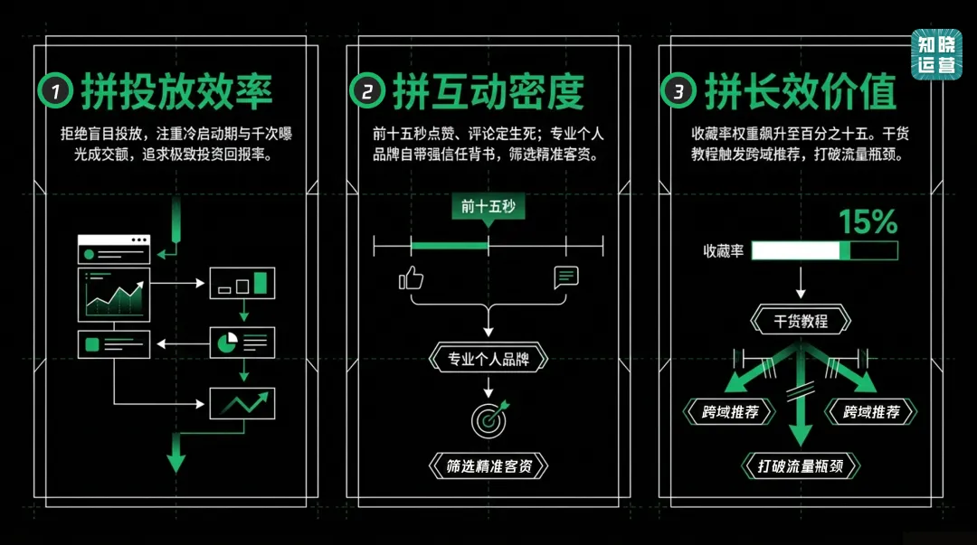 收藏率权重飙升至15%。多制作教程类、干货类内容,明确引导记得收藏,以防找不到,这类内容能触发跨域推荐,帮你找到更多潜在客户。