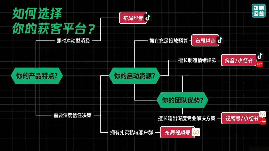 了解了平台区别后,我们按着下面的选择地图可以代入思考下,不同平台适合不同客户。