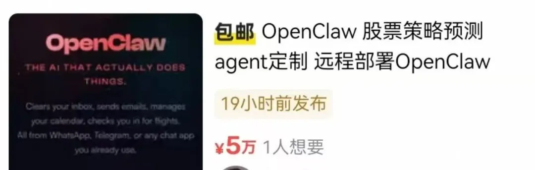 闲鱼上甚至部署一些特定需求的龙虾服务收费高达5万元,这是疯了吗?还是说市场需求真的盲目且冲动?其实龙虾(OpenClaw)不是万能摇钱树,只是能放大效率的工具。想吃到这波红利,核心不是“砸多少钱买设备”,而是“你是谁、你有什么业务、你能让龙虾替代什么工作”。(这段是丰年自己写的)