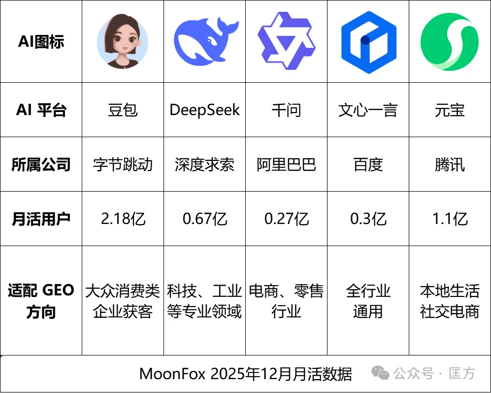 我们判断26年上半年一波用户爆发,下半年中小微企业肯定要往里面冲,GEO市场也就彻底爆发了,是啊,现在谁还用百度搜东西?反正老匡是八百年不用百度了。