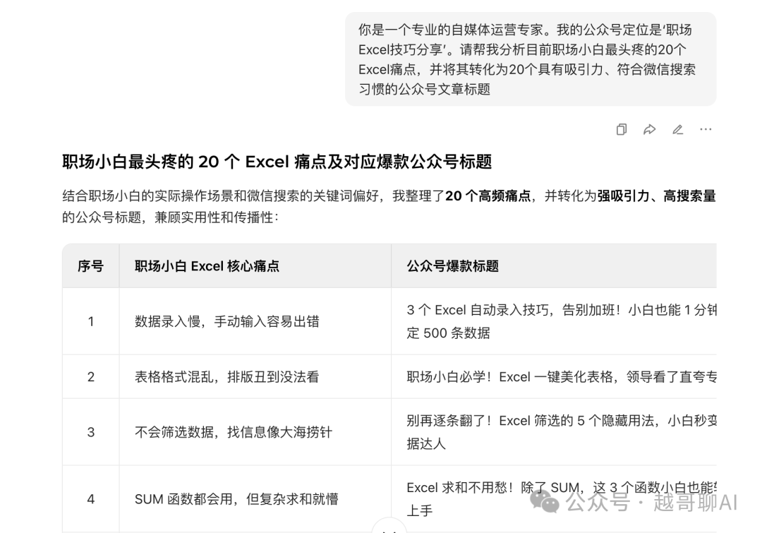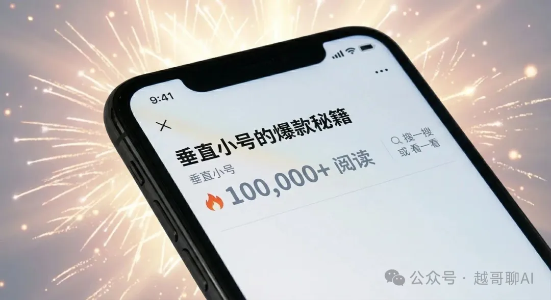 流量见顶的时代,普通人还在微信生态里有机会吗? 这是我最近在后台收到挺多的问题。 如果你还用2020年的思维看公众号,你当然觉得没机会。 但如果你看懂了2025年微信的底层逻辑变迁,你会发现:公众号正在经历第二春,而这一次,机会不属于面面俱到的大号,而属于精准犀利的垂直小号。 今天,我们就来拆解:微信公域化背后的逻辑,以及普通人如何利用AI工具,通过垂直小号矩阵,吃到这一波实实在在的红利。 01 认清局势——微信的公域化大迁徙 你关注了我,才能看到我。这种模式导致强则恒强,新人极难出头。 但这两年,你有没有发现微信变了? 看一看的算法推荐权重越来越高: 哪怕你没有关注这个号,只要内容优质、标签匹配,它就会出现在你的非关注信息流里。 搜一搜的月活用户已超过8亿: 这是一个极其恐怖的数据。这意味着微信已经成为了中国移动互联网事实上的第二百度/谷歌。 这就是微信的公域化。 微信正在打通公众号、视频号、朋友圈和搜索。 这意味着,对于新号来说,粉丝数不再是决定流量的唯一指标,甚至不是核心指标。 只要你的文章命中了用户的搜索关键词(SEO),或者触发了推荐算法的标签,一个只有10个粉丝的新号,完全可能产生一篇10万+的爆款文章,或者获得长达数年的长尾搜索流量。 这就是普通人的机会:我们不需要做那个拥有百万粉丝的KOL,我们只需要做那个能解决具体问题、被搜索命中的垂直小号。 02 为什么是垂直小号 不是“情感号”,而是“异地恋修复指南”; 不是“美食号”,而是“空气炸锅懒人食谱”; 不是“装修号”,而是“90平米北欧风装修避坑”。 小代表切口小,垂直代表人群准。 在这个新生态下,垂直小号拥有三大降维打击的优势: 搜索权重的红利(SEO) 微信“搜一搜”的逻辑非常务实。当用户搜索“痛风怎么吃”时,由于公众号的权威性背书,一篇专业的垂直文章往往比短视频更容易获得信任。 极高的转化价值(线索获客) 泛娱乐流量不仅贵,而且废。但垂直流量虽然少,却极度值钱。 一个拥有50万粉丝的搞笑号,发一条广告可能报价5000元;但一个只有5000粉丝的“本地牙科矫正科普号”,可能一条广告或者一个私域引流的线索,价值就高达数千元。 在垂直领域,1个精准粉丝的价值,抵得上1000个泛粉。 容错率高,矩阵化操作 做一个大号需要天才的创意和极强的人设,这很难复制。 但做一个解决具体问题的垂直小号,只需要标准化的SOP(标准作业程序)。 既然容易复制,我们就可以做矩阵。 如果你掌握了方法,你可以同时运营“Excel技巧”、“PPT模板”、“Python入门”三个号。