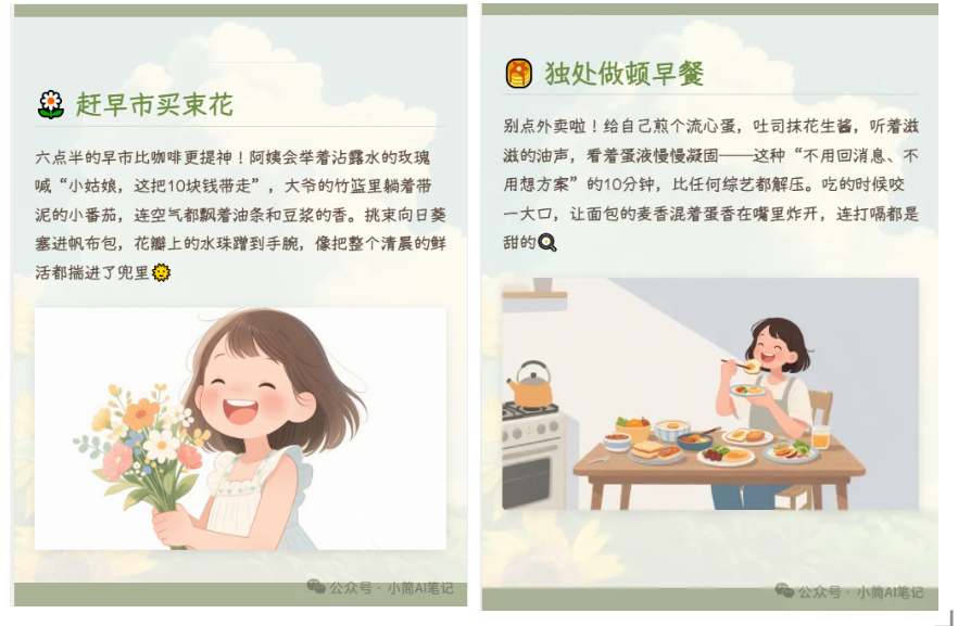 - 文案结构化拆分:将完整文案拆分,对应不同图文卡片的内容;