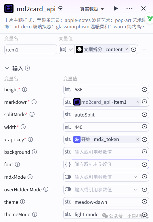 - md2token:md2_card笔记生成卡片的密钥,必填,详细获取方式见md2_card节点
