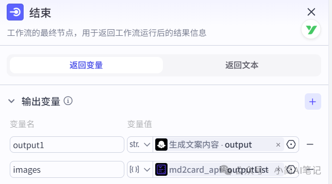 通过大模型将生成的文案进行拆分,把标题、正文、标签拆开。正文内容分段,为后续生成图文卡片做准备。