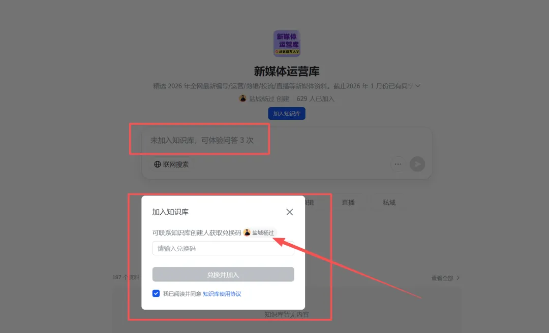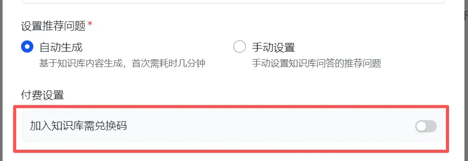 目前问答知识库无法设置直接付费,可以设置兑换码,如果是是为了引流,不需要设置兑换码,如果是准备收费,或者是对内容成员使用,就设置兑换码,需要兑换码才可以进入。